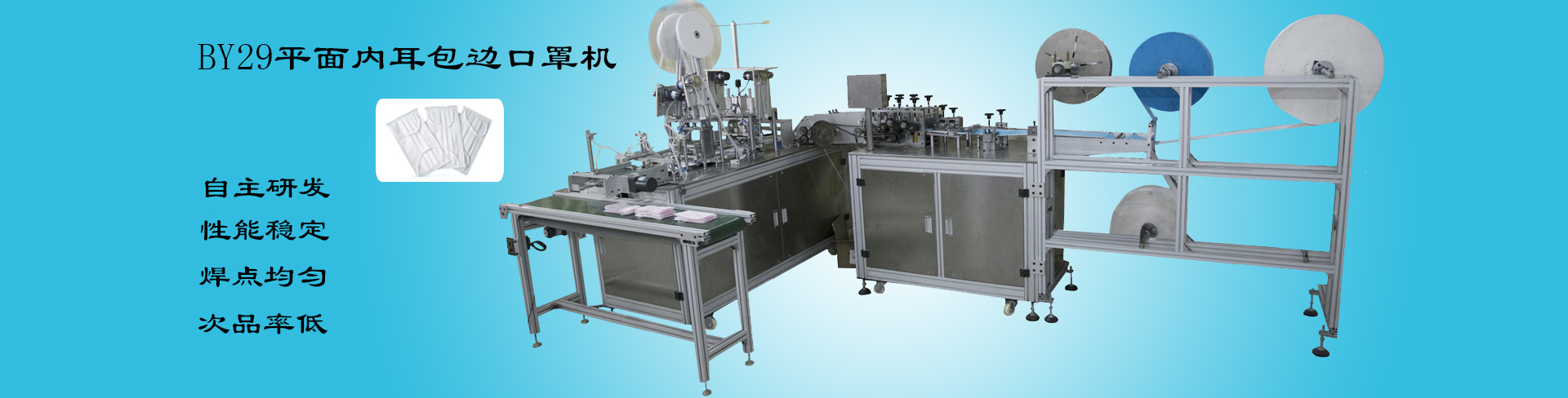邦銀產(chǎn)品:全自動(dòng)口罩機(jī)系列、無(wú)紡布口罩機(jī)系列、防塵防霧霾口罩機(jī)系列、平面/立體口罩機(jī)系列、全自動(dòng)杯型/折疊(C型)/鴨嘴/梯形口罩機(jī)系列、口罩機(jī)維修和軟件升級(jí)以及改裝等服務(wù)、口罩機(jī)配件商城、八大系列上百款產(chǎn)品。同時(shí),還能為用戶量身定制各種非標(biāo)專(zhuān)用設(shè)備,充分滿足不同客戶對(duì)產(chǎn)品的個(gè)性化需求,在國(guó)內(nèi)外市場(chǎng)擁有較高的信譽(yù),贏得了眾多知名企業(yè)的青睞與合作,產(chǎn)品除暢銷(xiāo)全國(guó)還遠(yuǎn)銷(xiāo)到印度、俄羅斯、巴西、、墨西哥、馬來(lái)西亞、波蘭、南非及澳大利亞等跨五大洲的眾多國(guó)家和地區(qū)。