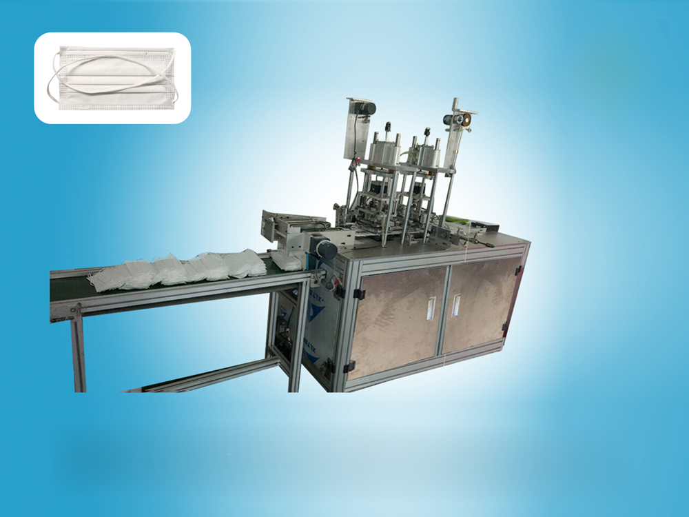 頭掛式口罩機(jī)是我公司根據(jù)客戶需求自主研發(fā),需一個(gè)工人把口罩本體一片一片放置于本機(jī)料盤上,進(jìn)行耳帶熔接,耳帶切斷,成品傳送,從而完成一個(gè)頭掛式口罩成品。