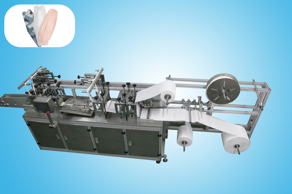 魚型本體口罩機:亦稱柳葉型口罩機,是用于折疊口罩本體生產的全自動機器,使用超聲波技術,將3~6層PP無紡布、活性炭以及過濾材料粘合,并滾切出折疊口罩本體,可加工3M 9001、9002等和其他折疊口罩本體。根據所使用的原材料不同,所生產的口罩可以達到如FFP1、FFP2、N95等不同的標準。再使用耳帶點焊機把耳帶焊接到本體上,即可完成