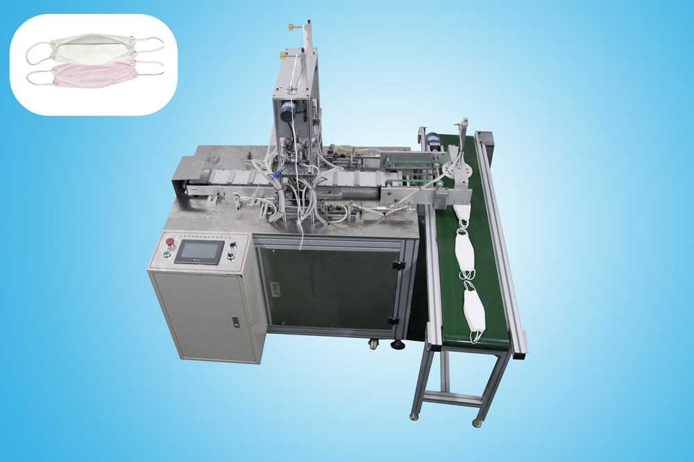 (工作流程:(口罩本體)人工入料—耳帶自動入料—耳帶切斷—超聲波溶接—成品輸送---數量計數—成品堆疊—輸送帶送出成品口罩)
